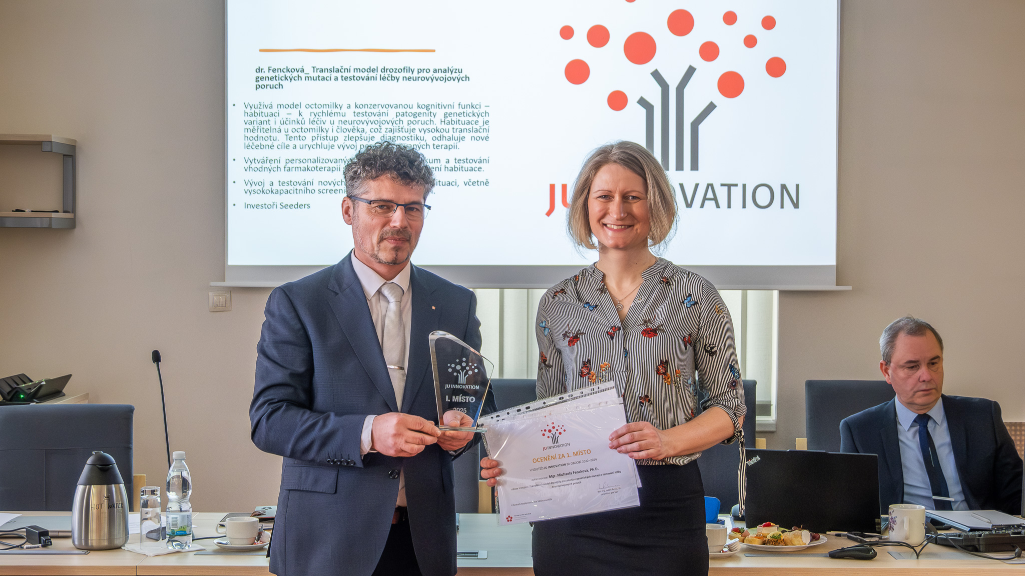 Při příležitosti konání Vědecké rady Jihočeské univerzity dne 18.3.2026 byla předána ocenění získané v soutěži JU INNOVATION.